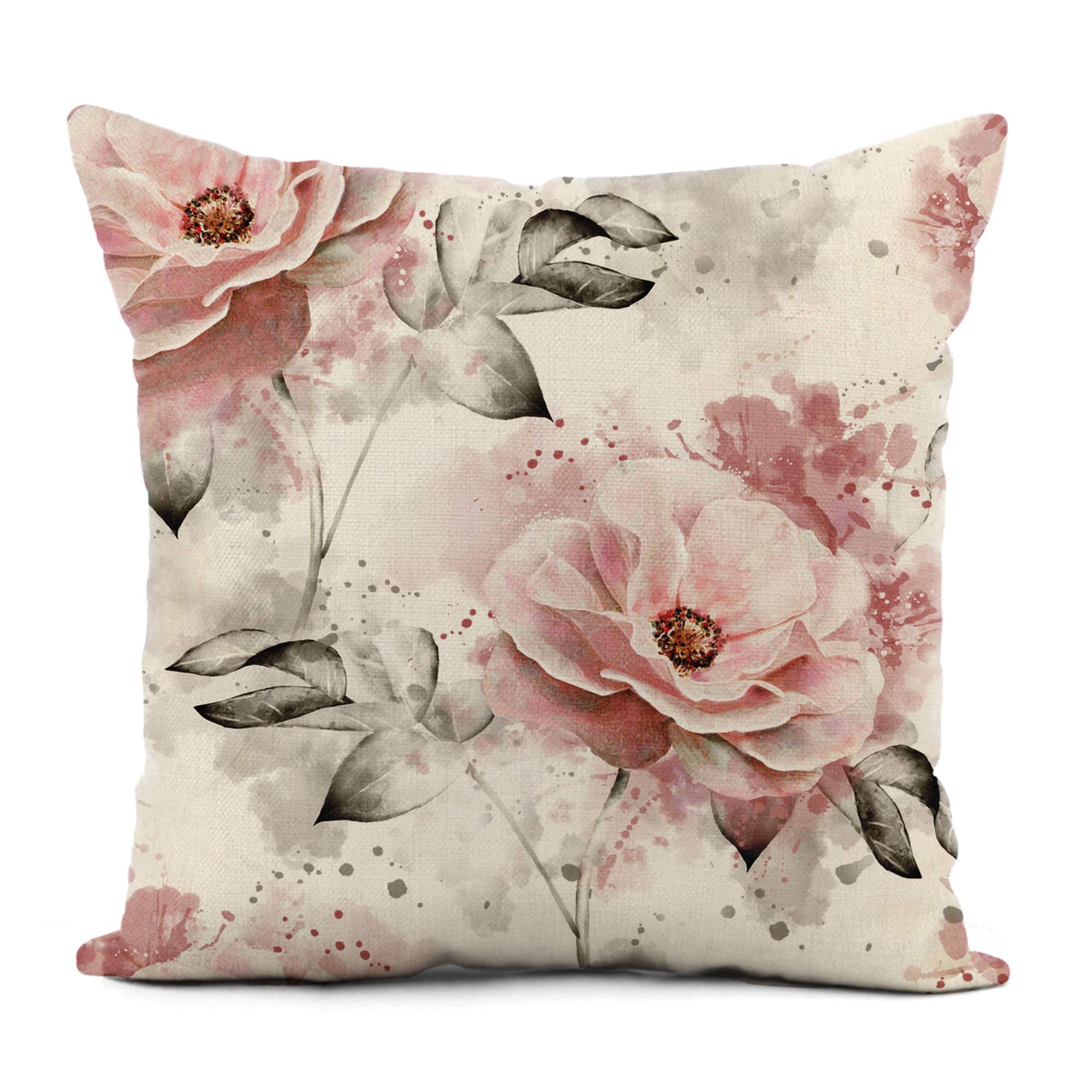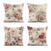 4PCS Modern Flower Printed Linen Pillow Covers Set Home Decoration