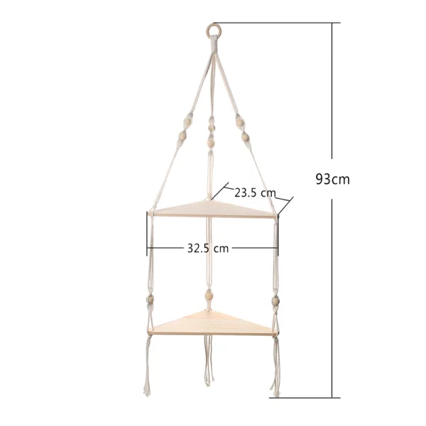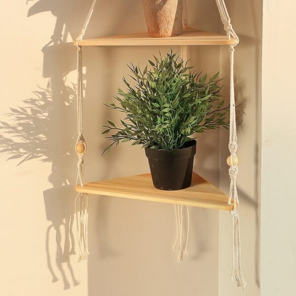 - The handmade macrame wood hanging shelf is linked by macrame cord woven by local craftsmen carefully, wall hanging shelf is made with natural materials to give people a minimalist feeling and create a relaxing ambience indoors.which matches any rustic, boho, modern, or minimalist home decor.