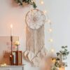 - This macrame wall hanging shelf creates extra space to beautifully display your favorite framed photos, collectibles, small plants, reed diffusers, spices, towels or small items. Decorative and practical. Place the boho wall decor shelf in your nursery, bedroom, living room, dorm, entrance, counter and more.