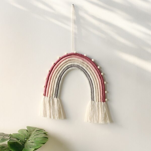 Pink Macrame Rainbow Wall Hanging Boho Home Decor