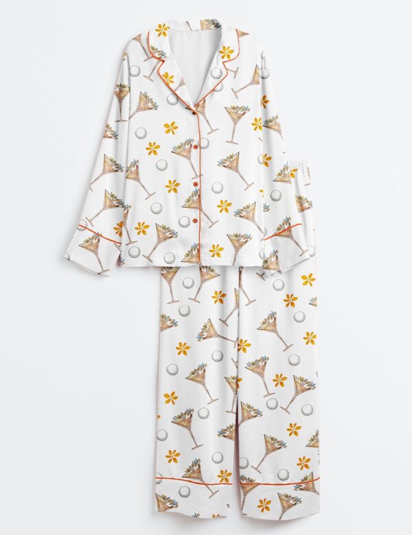 Women’s Golf Girl Golf Lover Martini Golf Print Satin Pajama Set
